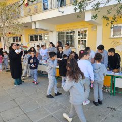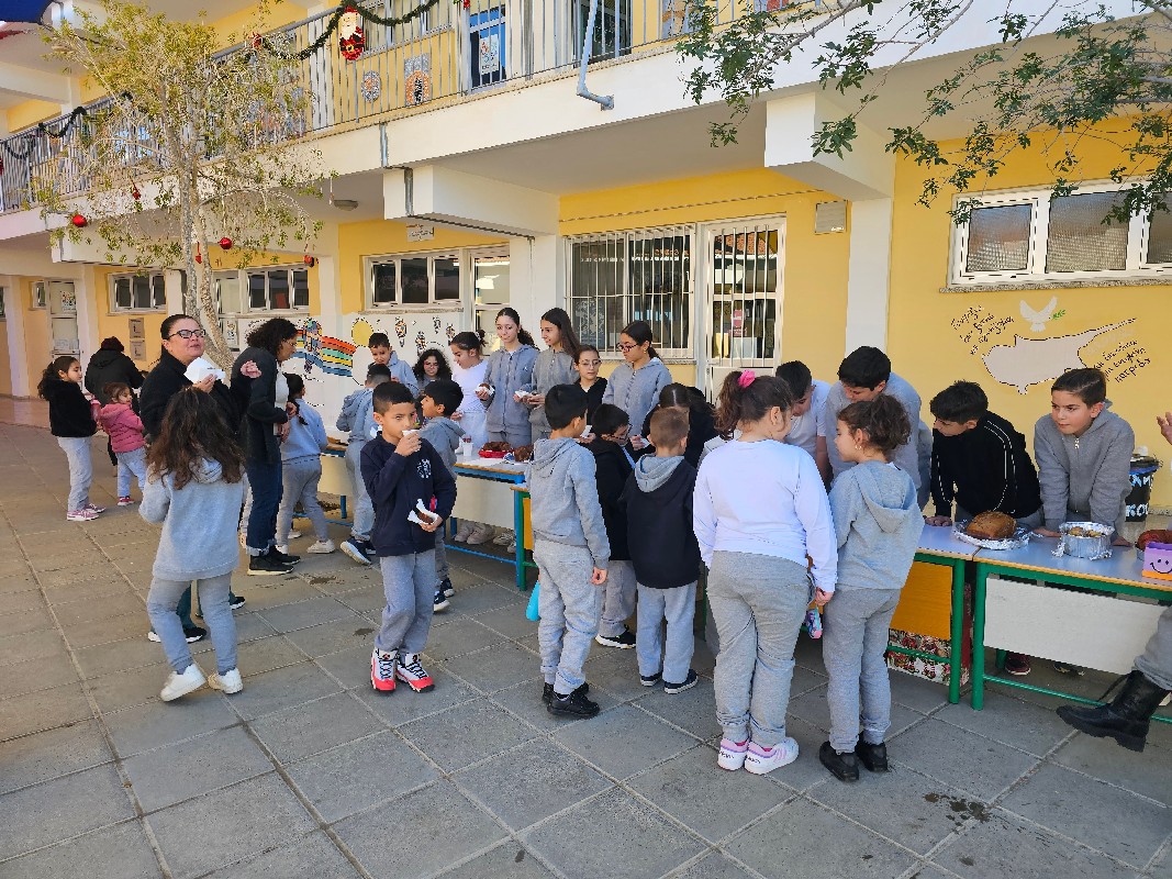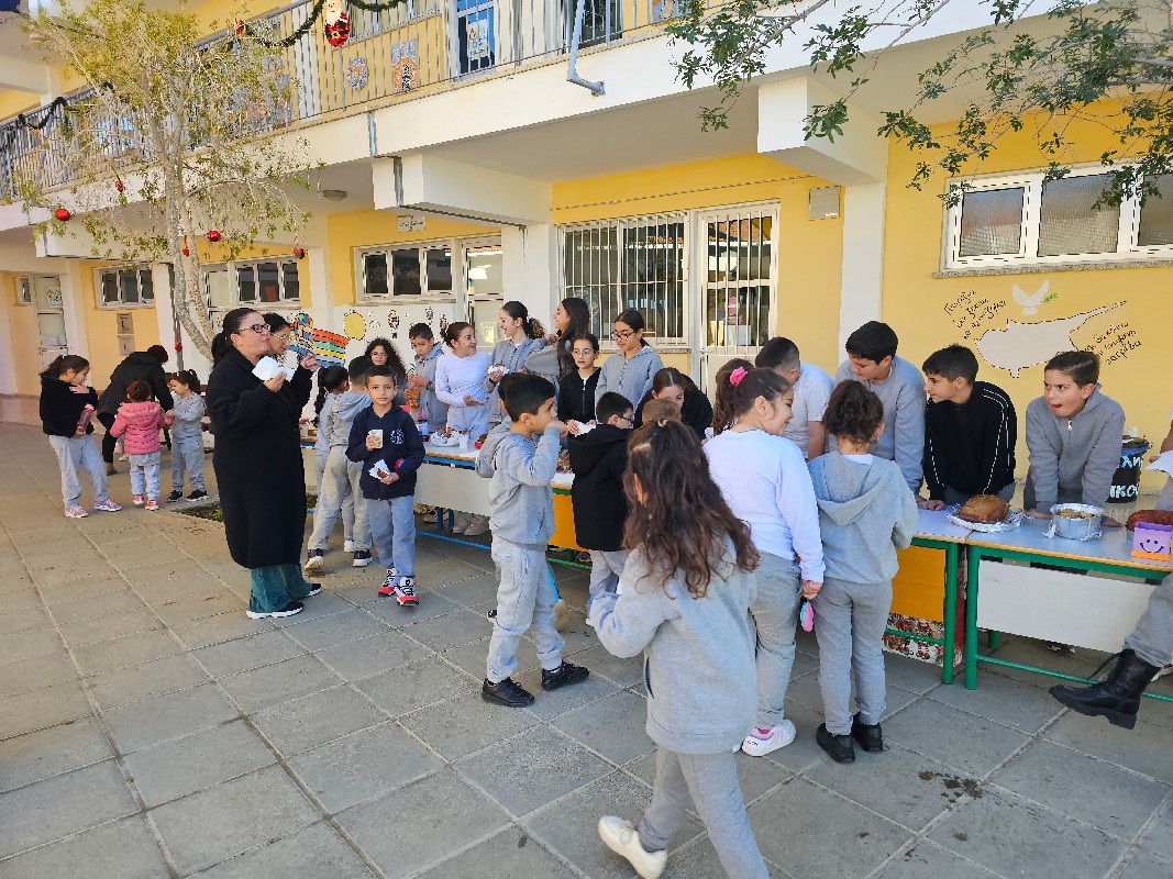 Οι μαθητές και το προσωπικό του σχολείου απόλαυσαν παρέα το υγιεινό cake τους στην αυλή του σχολείου λίγο πριν από τις χριστουγεννιάτικες διακοπές.